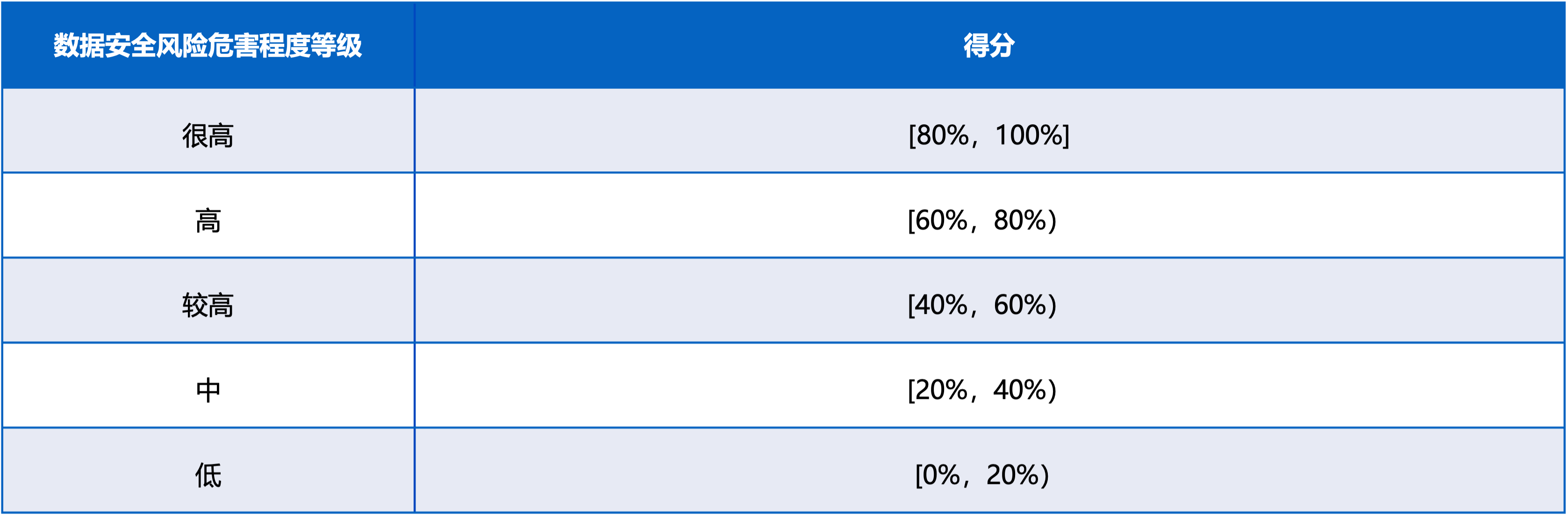 先按照百分制對數據安全風險危害程度、數據安全風險發生可能性進行量化,得分越高代表風險危害程度、風險發生可能性越高。